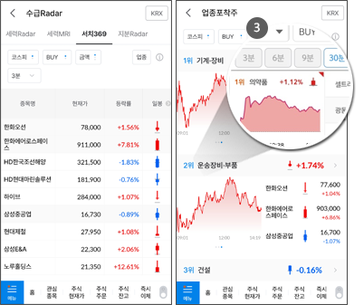 분석하여 시간대별 수급이 활발한 업종과 매수