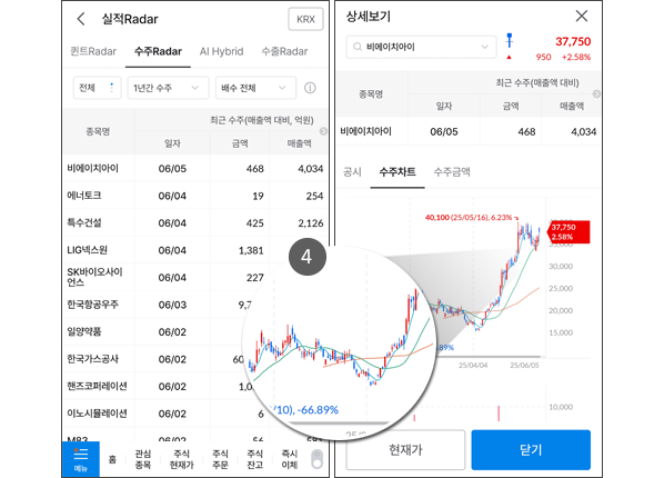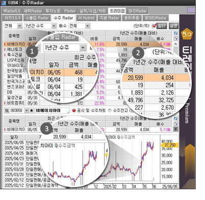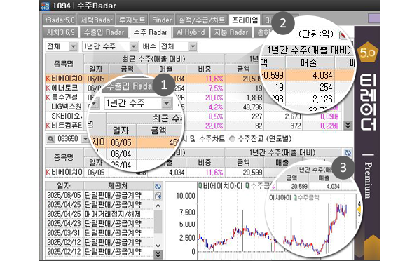 ③tRadar실적을 이용하면 수주와 매출의 추이를 보다 쉽게 확인해 볼 수 있습니다.