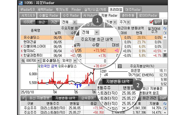 주가등락을 추적하여 제공하는 서비스입니다. - Point 2 지분Radar는 기업 사정을 보다 잘 아는 최대주주,