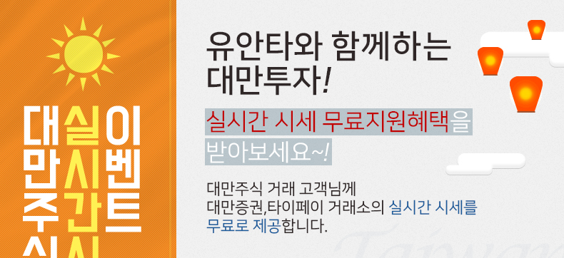 유안타와 함께하는 대만투자! 실시간 시세 무료지원혜택을 받아보세요~!