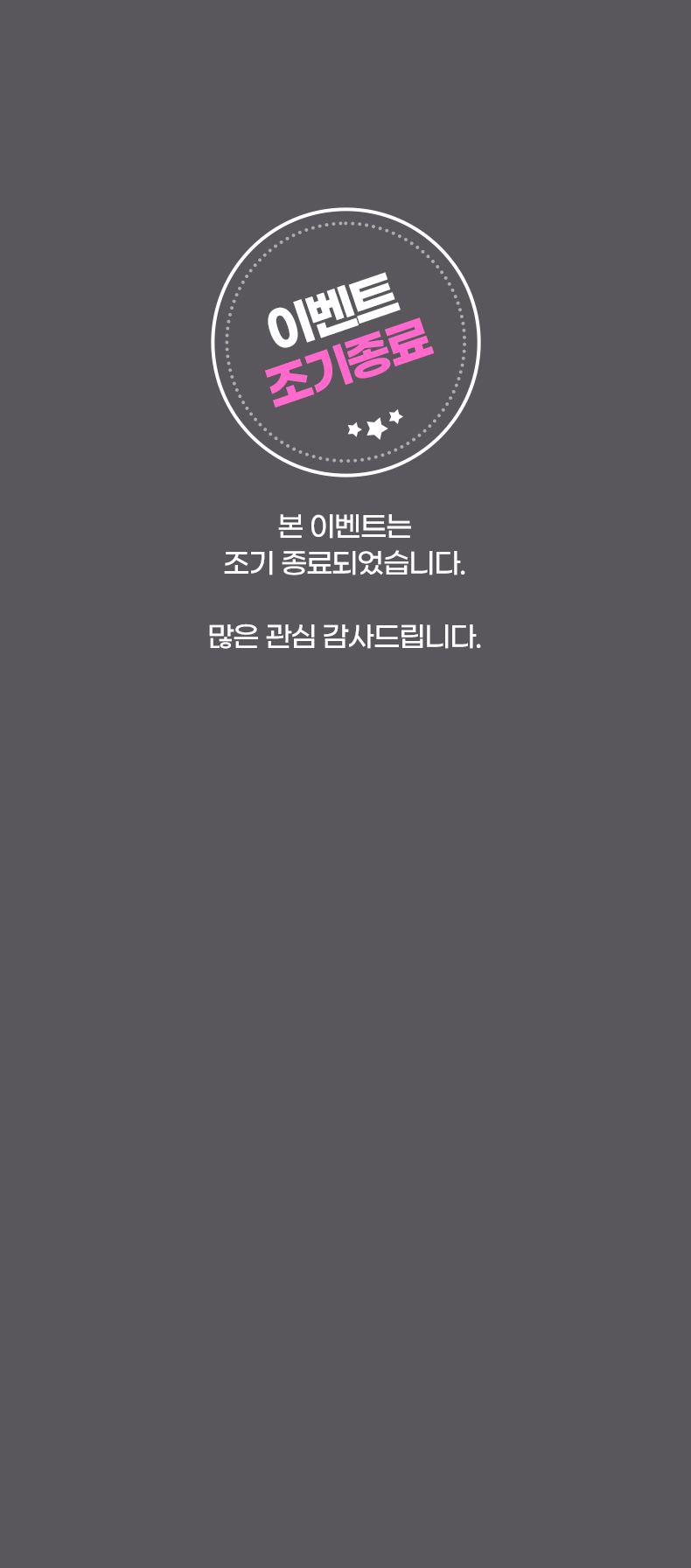 이벤트 조기종료. 본 이벤트는 조기 종료되었습니다. 많은 관심 감사드립니다.