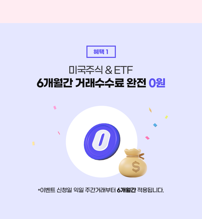 • 혜택 1. 미국주식 거래수수료 0원 6개월 적용