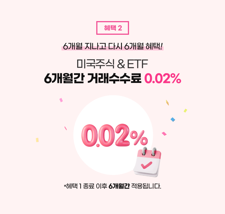 • 혜택 2. 혜택 1 이후 미국주식 거래수수료 0.02% 6개월 적용