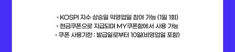 • * KOSPI 지수 상승일 익영업일 참여 가능 (1일 1회)