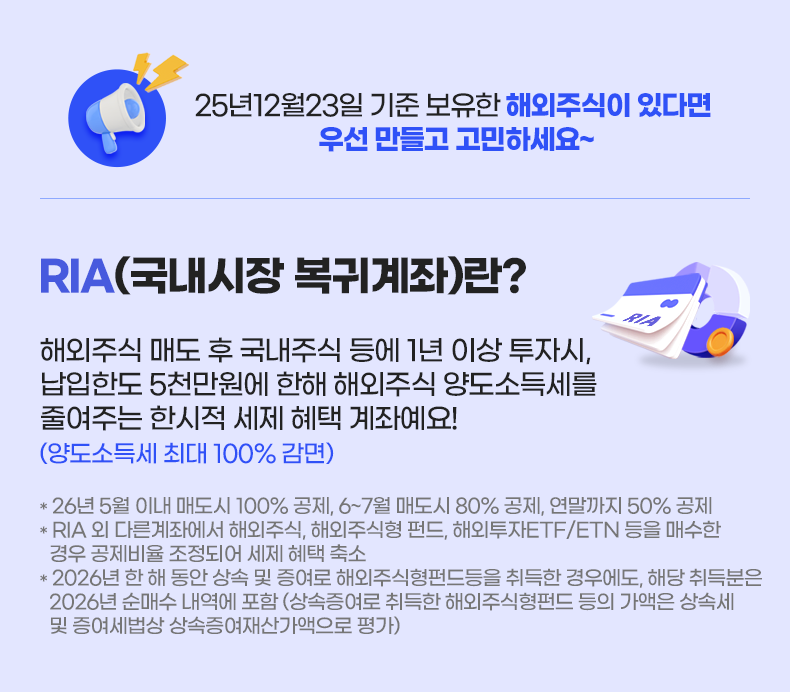• 대상 : RIA개설 & 해외주식 1주 이상 입고한 고객 (25년12월23일 기준 보유 주식)