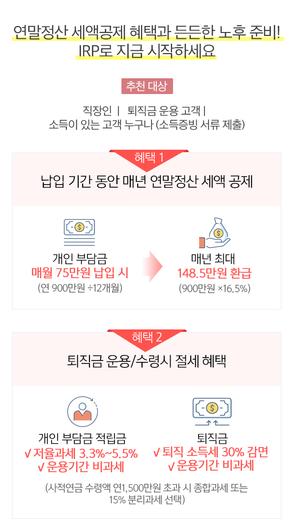 연말정산 세액공제 혜택과 든든한 노후 준비! IRP로 지금 시작하세요
