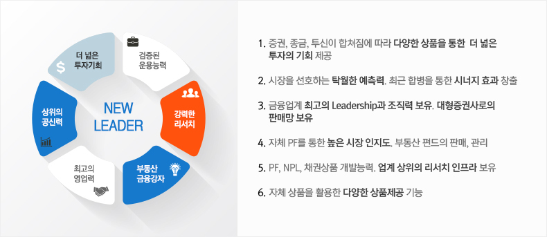 검증된 운용능력, 강력한 리서치, 부동산 금융강자, 최고의 영업력, 상위의 공신력, 더 넓은 투자기회