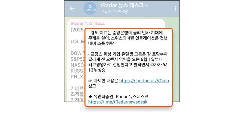 글로벌 마켓 업데이트, 텔레그램 하나로 텔레그램 tRadar 뉴스데스크